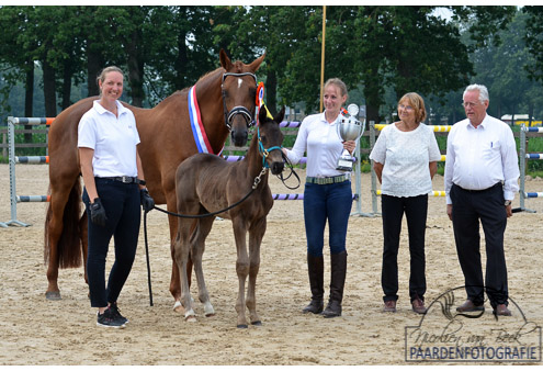 Zo was het dit jaar ook. Eerst werd er bepaald welke merrie veulen de beste was. Daarvoor mochten 3 merries de baan betreden. Alle drie hadden ze 56 punten. Ze ontliepen elkaar dus niet in kwaliteit. Toch waren het heel verschillende veulens. Alleen al door de leeftijd waren er grote verschillen. Maar de kwaliteit scheen bij allemaal heel duidelijk door.