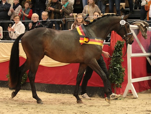 In Nederland hebben we geen echt woord voor Beschäler. Misschien komt vaderdier het meest in de beurt? Dat is wel meteen waar je aan denkt als je deze jonge hengst ziet. Bij Sprehe zal Eichenkönig zijn genen niet alleen aan Trakehner merries gaan doorgeven.