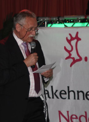 De volgende spreker die Gerald aan ons voorstelde was Vice Voorzitter van het Verband de heer Hans Werner Paul. Hij feliciteerde TCN met het jubileum, bedankte Antoon voor zijn tomeloze inzet. De Heer Paul komt altijd graag naar Nederland om mee te genieten van de Nederlandse Trakehners en te zien dat er veel enthousiaste fokkers zijn die hun ras vol overgave promoten, dat gebeurt nergens ter wereld zo goed als hier in Nederland. Hij gaf verder aan dat het Verband met veel belangstelling de promotie en carrière van TCN Partout, gereden door Anky van Grunsven, heeft gevolgd. Zij hebben daar veel van geleerd, niet eerder was er een hengst zo “in de markt gezet” als sport én dekhengst. Een voorbeeld dat nu vaak nagevolgd wordt. Gereden door Anky en voor de fokkerij ingezet via hengstenstation van Uytert was het project Partout een groot succes, waarmee het Trakehnerras aan populariteit won. Populariteit die nog steeds zichtbaar is in de bloedlijnen van de sportpaarden van nu. Meneer Paul sprak de hoop en wens uit dat TCN  nog jaren doorgaat met het in stand houden en promoten van het geweldige Trakehner ras.
