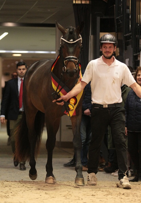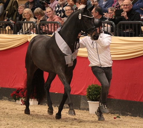 En Hannu Hakoon ook, hij is zo’n Trakehner die in álles Trakehner is. Zo’n mooi paard! Hij wordt de tweede reservekampioen.