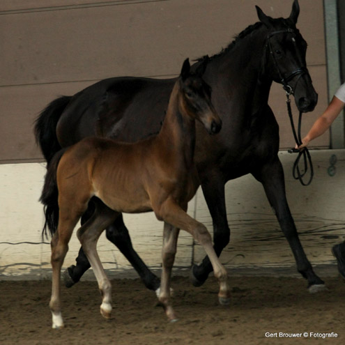 Ze is een zwarte uitvoering van haar moeder Goldkrone, dat is een Münchhausen dochter die het eerst in de sport en nu in de fokkerij heel goed doet. Met deze Fairmont Hill dochter levert ze wederom een heel fraai en af paard, een paard waar je liefst meteen een zadel op legt om te gaan rijden. Ze heeft grote lijnen en ruime partijen die alleen nog maar mooier zullen worden in haar verdere ontwikkeling. Ze heeft rust in zich om de hele situatie eens rustig in zich op te nemen, dan te doen wat haar gevraagd wordt, een heerlijk sportpaard! Haar chique zwarte kleur word verlevendigd door een hele lichte zweem van stekelharigheid.